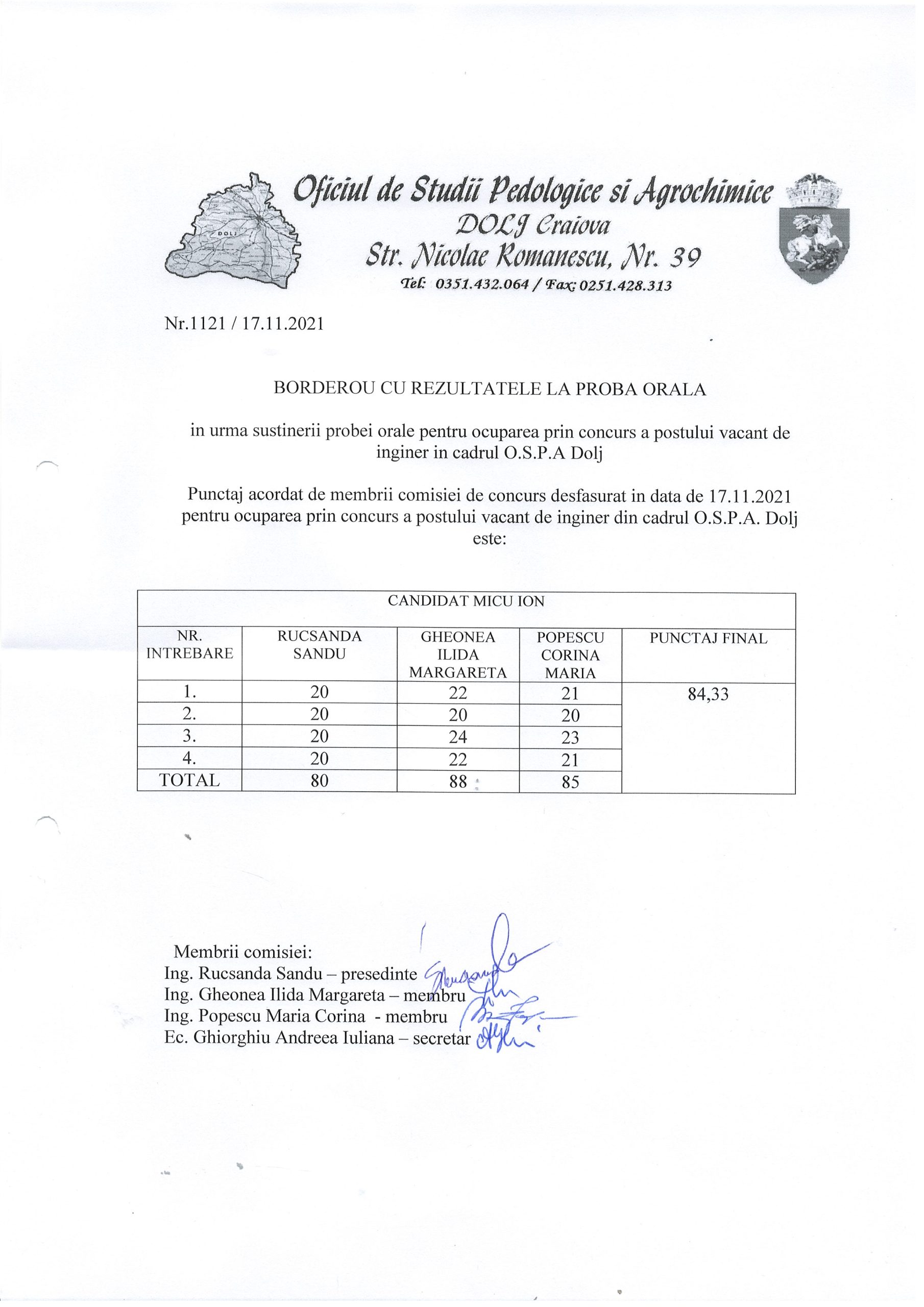 Anunt angajare 09.08.2021 Concurs OSPA 09.08.2021 Lista rezultate selectie dosare privind concursul din 09.08.2021 Borderou notare proba scrisa Centralizator rezultate finale