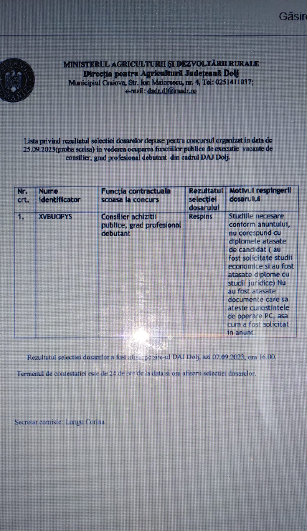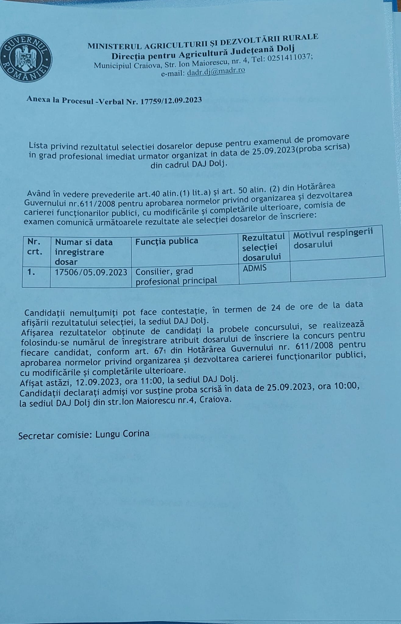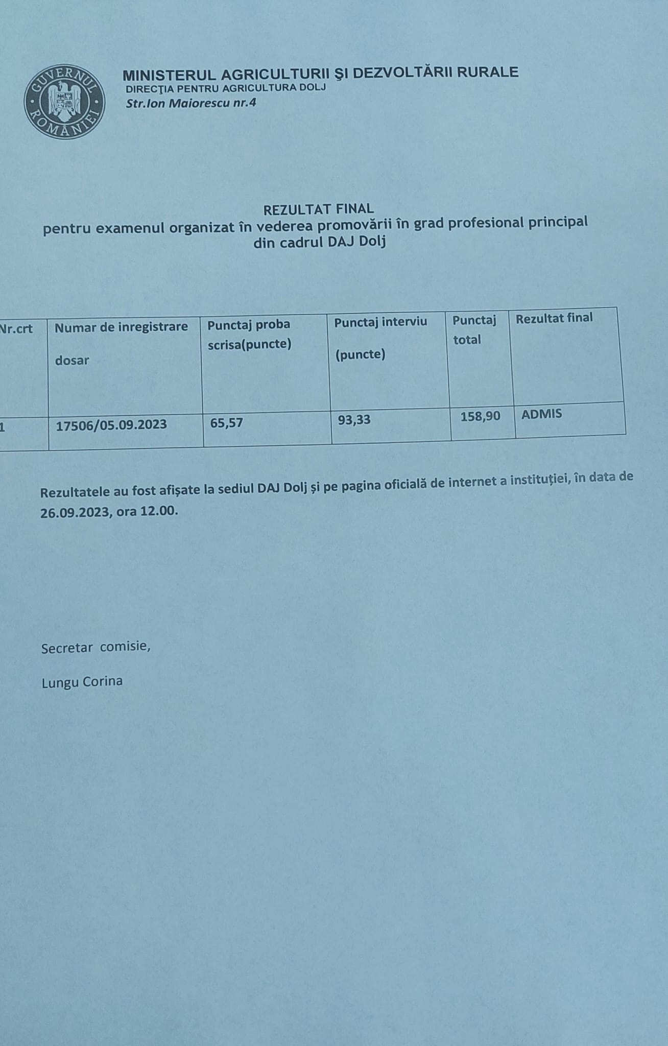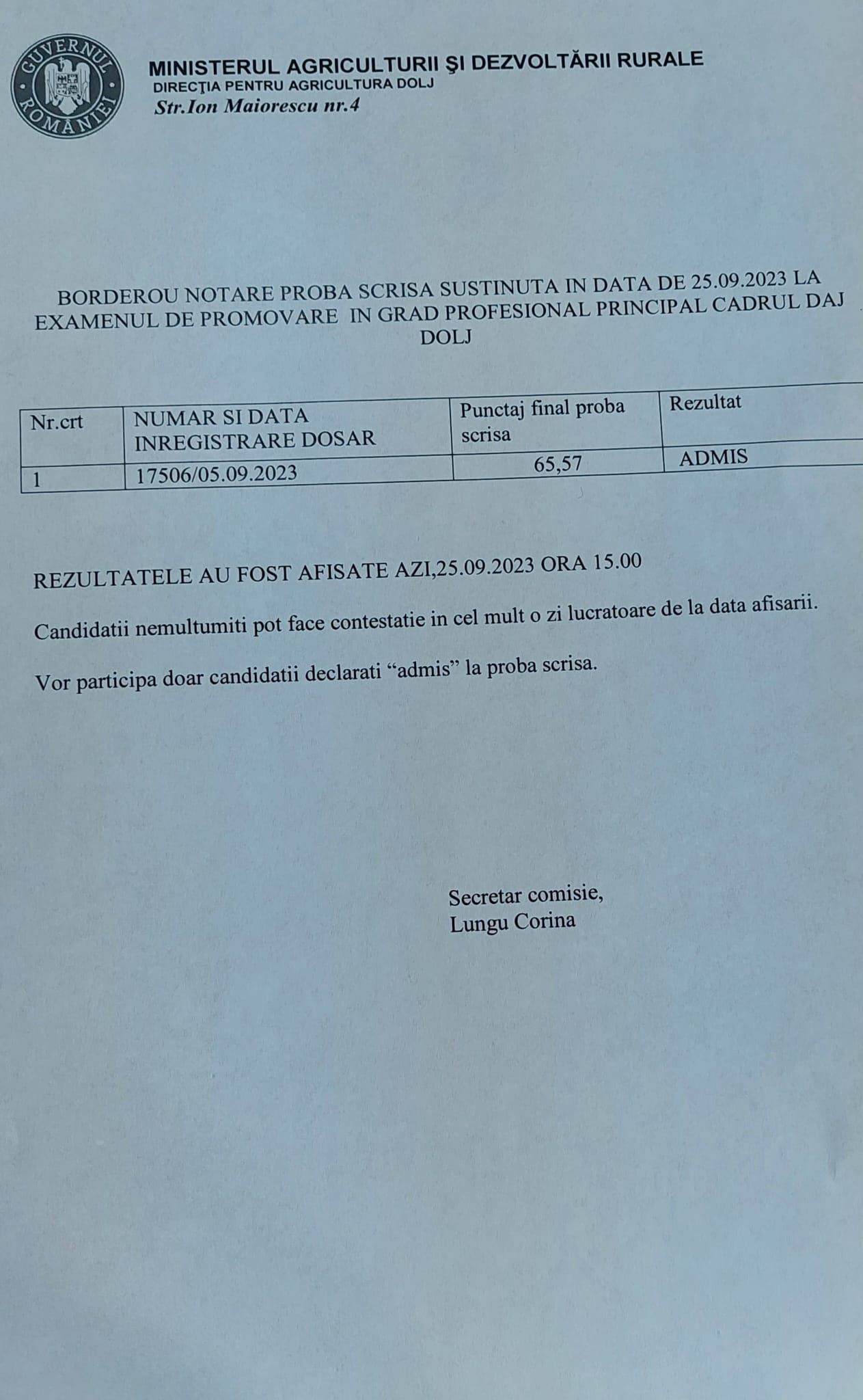 Anunt angajare 01.09.2021 Concurs 01.09.2021 Lista rezultate selectie dosare Borderou notare probă scrisă Rezultat contestatie